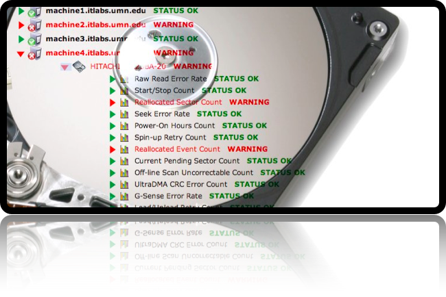 The smartNET Network Sentinel is a combination of an easily distributable version of smartmontools along with a client/server architecture and web-based GUI.  It will allow system administrators and home users to centrally monitor S.M.A.R.T. characteristics of all disks on their network. University of Minnesota Institute of Technology Download Features Visit Our sourceforge.net Project Page Documentation Get Involved